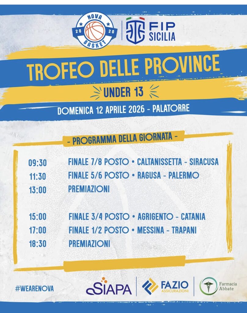 L’ultimo atto del 20º Trofeo delle Province è previsto per domenica 12 aprile al PalaTorre di Torrenova (Messina), dove si svolgeranno le quattro finali definite dalle eliminatorie di febbraio. Il Comitato Regionale FIP Sicilia organizza ospitato dalla Nova Basket per una lunga giornata riservata agli atleti nati nel 2013.