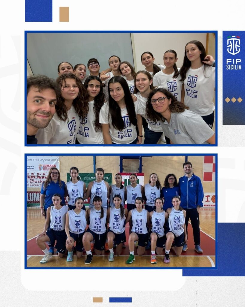 Sicilia Under-14/F: Di Bella 5, Farruggio 4, Cilia, Kamal 2, Volpe 7, Castiglia 6, Faraci 4, Rescifina © 1, Mondo, Scialdone, Parasiliti, Sgroi. All. Buzzanca. Vice: Di Bianca.